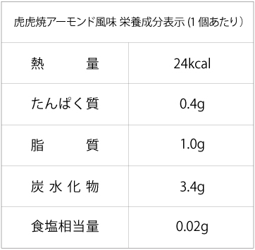 アーモンド風味の虎虎焼が12個入ったパックです。